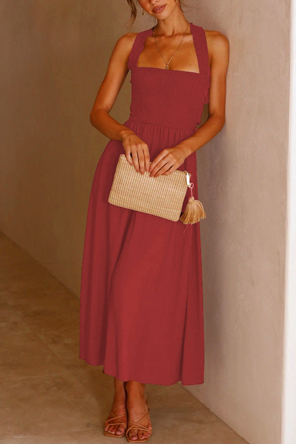 Bendita Pocketed Smocked Cross Back Midi Dress